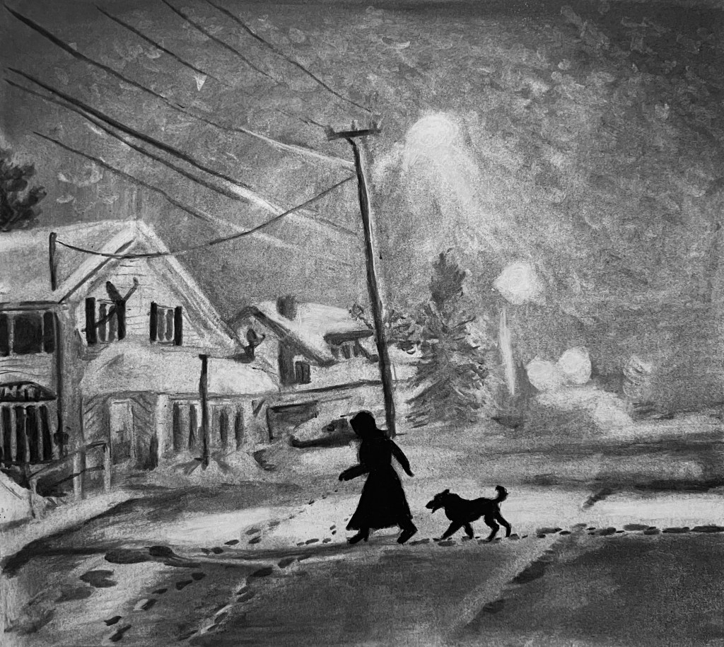 Posted byEllen SheehyDecember 21, 2024December 21, 2024Posted inArt Winter street. Charcoal on paper. Spring 2023. Share this:TweetLike Loading... Related