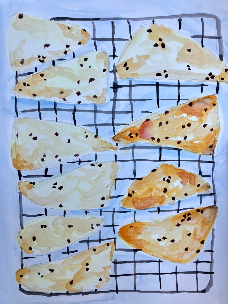 Posted byEllen SheehyDecember 21, 2024December 21, 2024Posted inUncategorized Scones. Watercolor on paper. Summer 2023. Share this:TweetLike Loading... Related