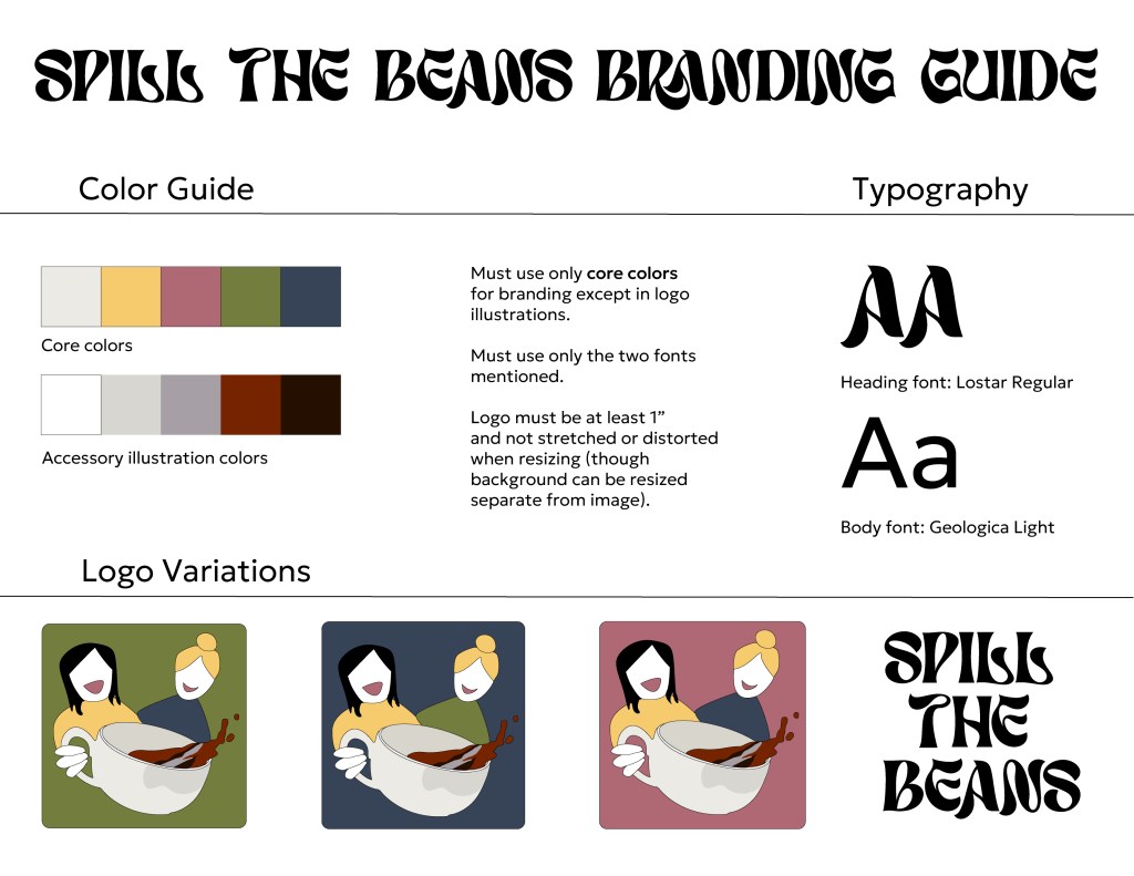 Posted byEllen SheehyApril 2, 2025April 19, 2025Posted inArtTags:Brand guide, Coffee, Packaging Coffee labels and brand guide. Designed in Adobe Illustrator and InDesign, Spring 2025. Share this:TweetLike Loading... Related